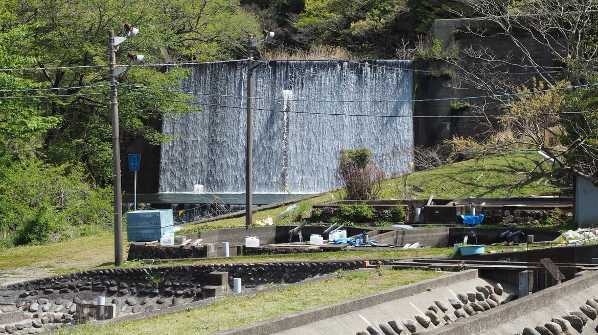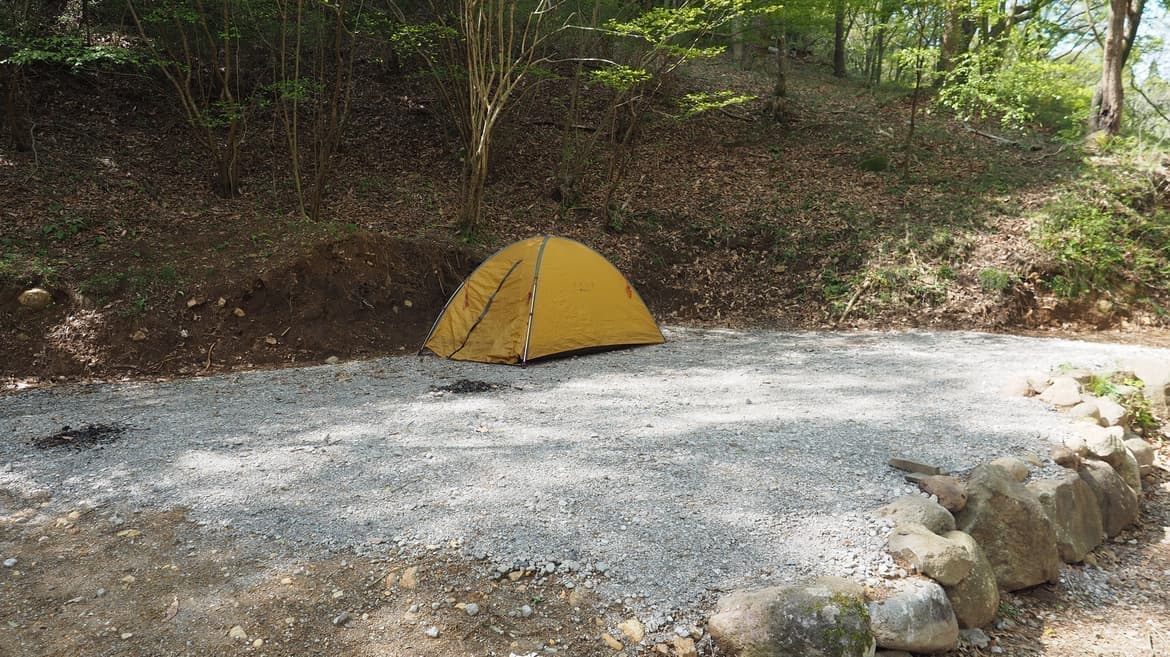 沢口川上流のダムを見下ろせる林間サイト。下界で遊ぶ子供たちをのんびりと眺める時間も過ごせます。