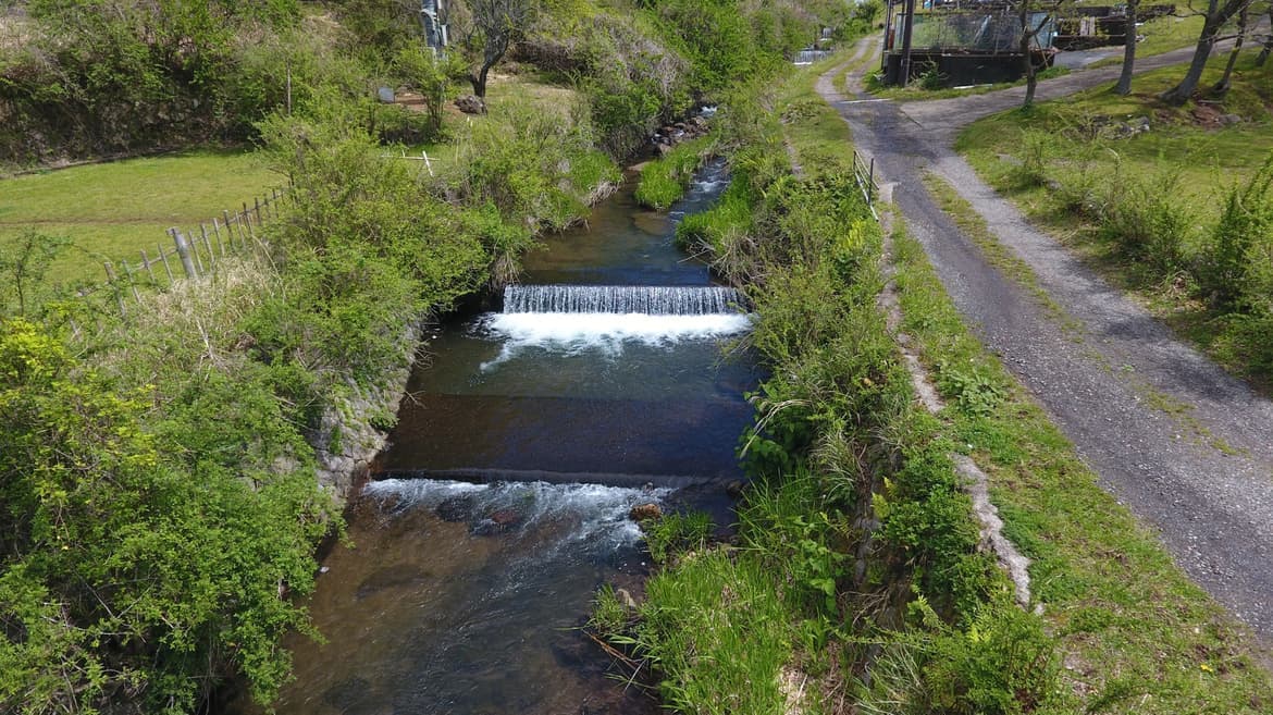 近くにキャンプ場内を流れる沢口川とダムのマイナスイオンが心を癒します。